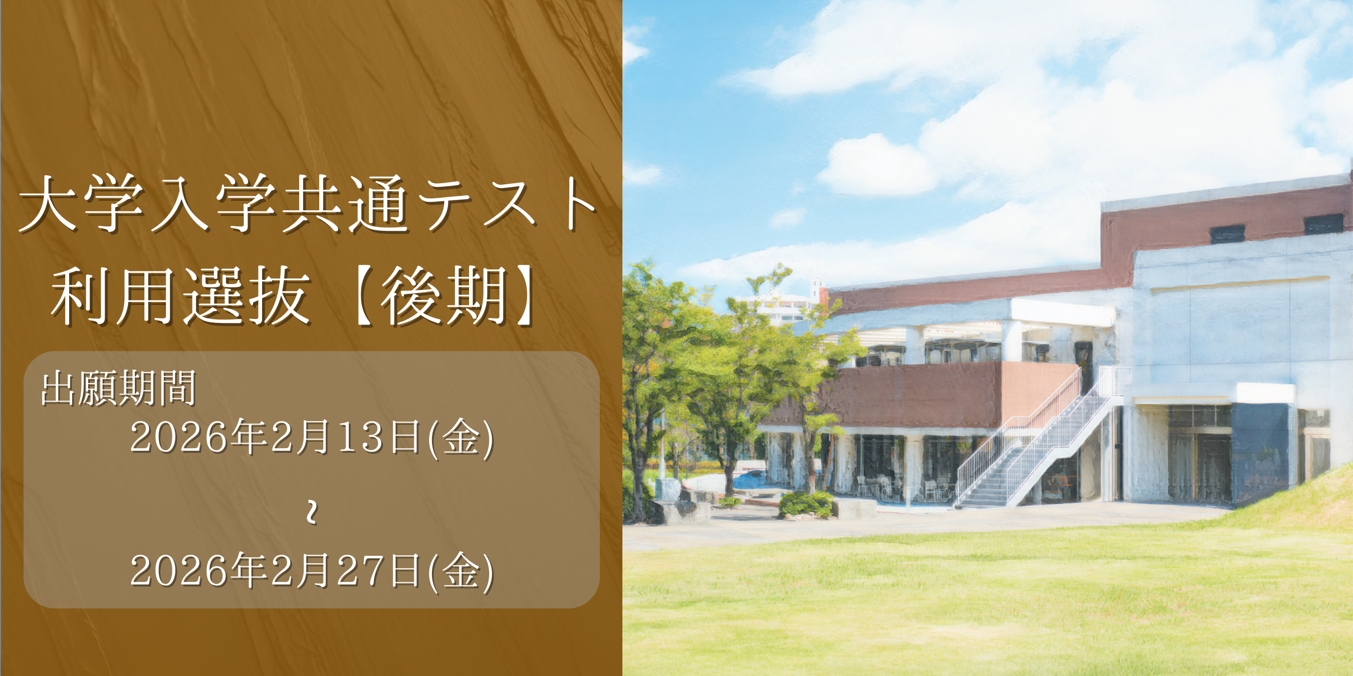 - 2026年2月12日一般選抜(後期)・大学入学共通テスト利用選抜 (後期) の出願受付開始