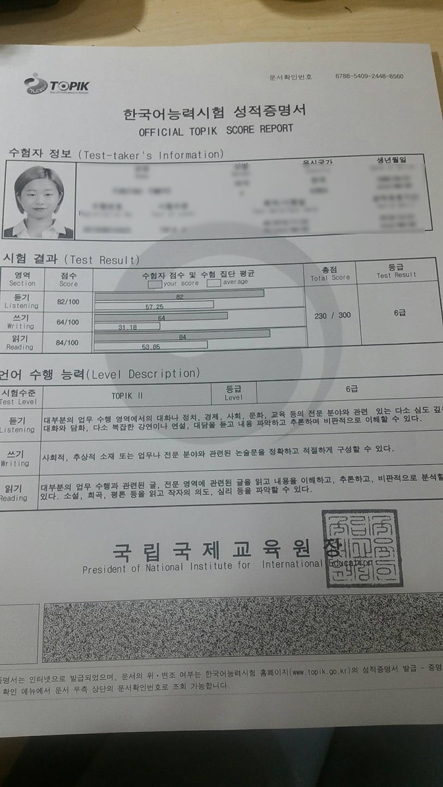 古谷さんは韓国語能力試験6級(最高レベル)を見事、合格しました。