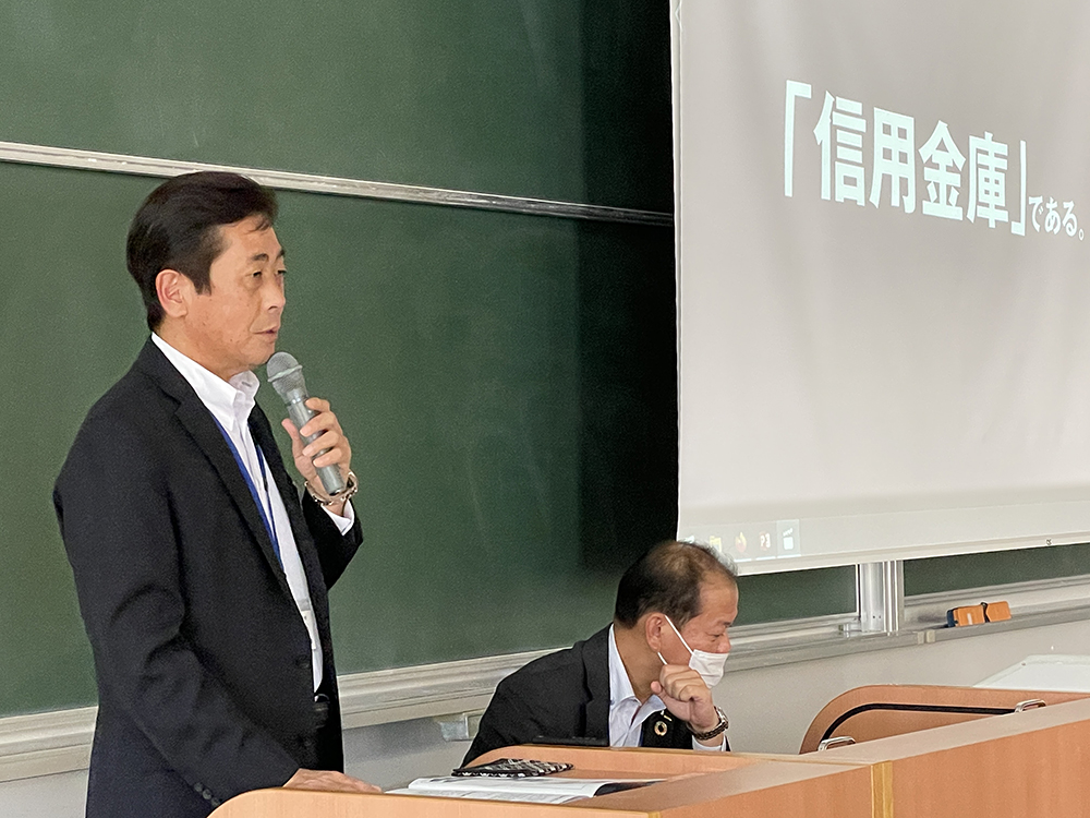 信用金庫の取組みや概要に、学生は真剣にメモを取っていました。
