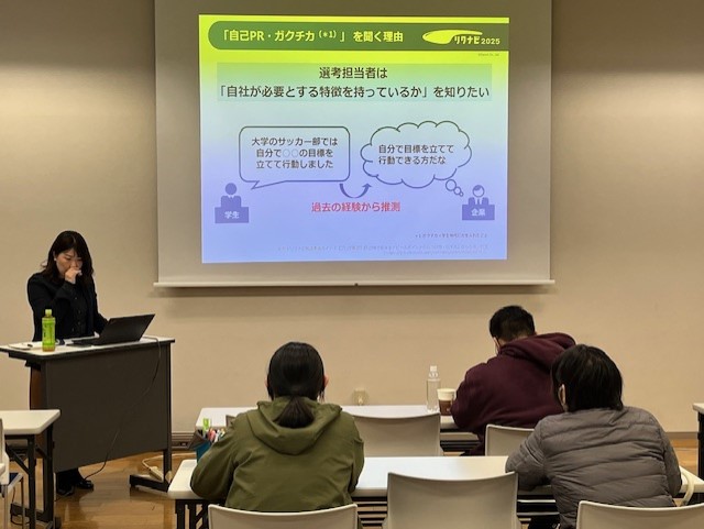 【就活準備】「自己PRとガクチカの作り方」実施しました。22 12月, 2023 in 注目のニュース / KIUブログ / キャリア支援室より / ニュース / 就 職 2023年ラストとなる就活講座 「自己PRとガクチカの作り方」を実施しました。 自己PRとガクチカを同じ内容でまとめようとすると 面接試験のシーンではかなり苦労します。2つの違いを しっかりと意識することのできる講座となったはずです。 年明けの1月以降も就活講座は実施していきます。 就活準備生は就職支援NAVIシステム内にてチェックしてみてください。 【キャリア支援室】