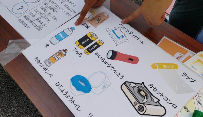 この「たらふくていwithあそぼうさい」に、法学部実習科目「リスクマネジメント実習1・2」を受講している有志と、現代ビジネス学部桒畑ゼミの学生たちが、お手伝いで参加させていただきました。