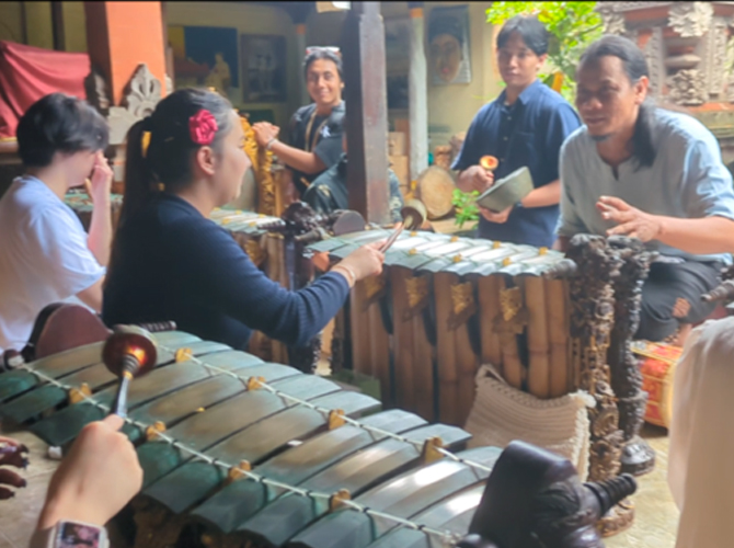 2月9日にバリ島に到着し、10日から13日および17日から19日までの計7日間、マハサラスワティ大学のバディ学生と共に行動しながら、バリ島のヒンドゥー社会の文化を学びました。また、現地の高校生に対して書道、折り紙、竹トンボなどを通じた日本文化の紹介活動を行いました。