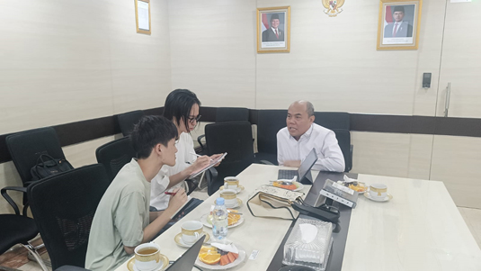 インドネシア社会省社会省、社会保護・保障総局長アグス・ザイナル・アリフィン氏を訪問し、九国大卒業生の有田一平さんとともに、現在のインドネシアにおける社会支援や社会問題についてお話を伺った。