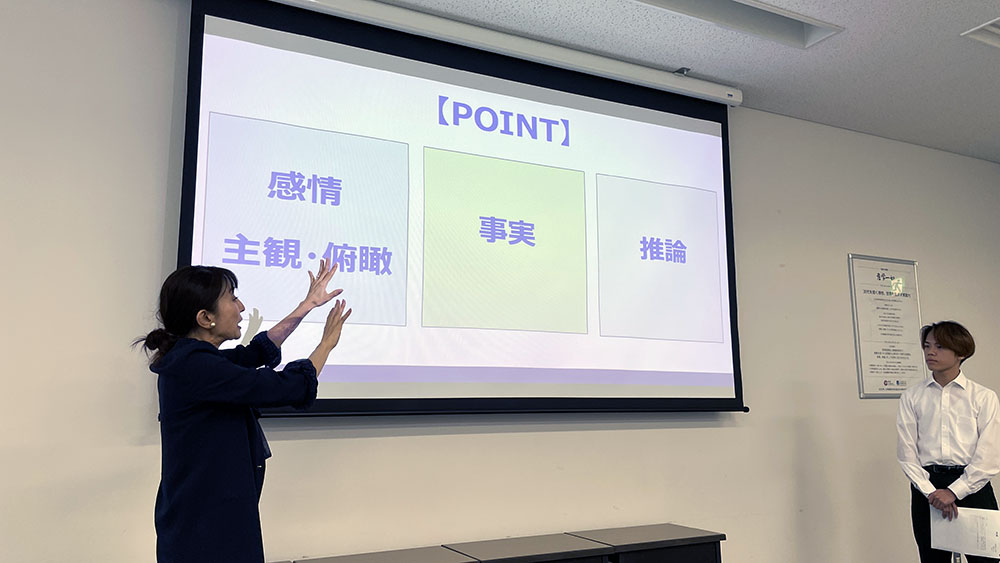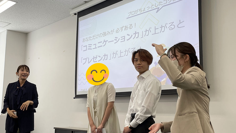 今回は、九州国際大学特任教授で元アナウンサーの古田厚子先生が発表の指導を担当してくださり、話し方や伝え方のプロから直接アドバイスを受ける貴重な機会となりました。