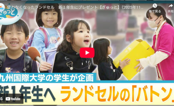 2025年11月1日のKBC(九州朝日放送)【ANNスーパーチャンネル】で学生プロジェクトチーム「サ [...続きを読む] [TV放送-サラクル] KBCぎゅっと「ランドセルランド」新一年生にランドセルの「バトン」5 11月, 2025 in 注目のニュース / KIUブログ / イベント情報 / 学生の活動紹介 / SDGsの取り組み / 地域社会貢献 / 地域連携センターより