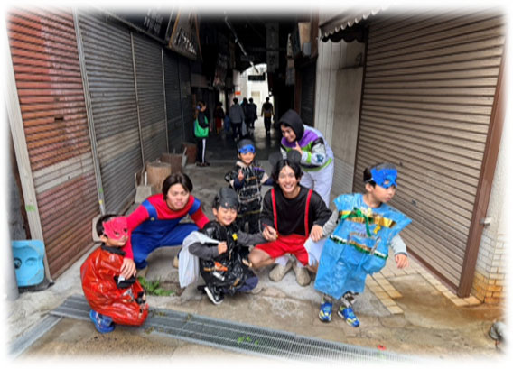 英語コース宮武ゼミは、2025年10月31日、枝光本町商店街にて、年間の英語発音ワークショップの締めくくりとして、恒例のハロウィーンイベントを実施しました。