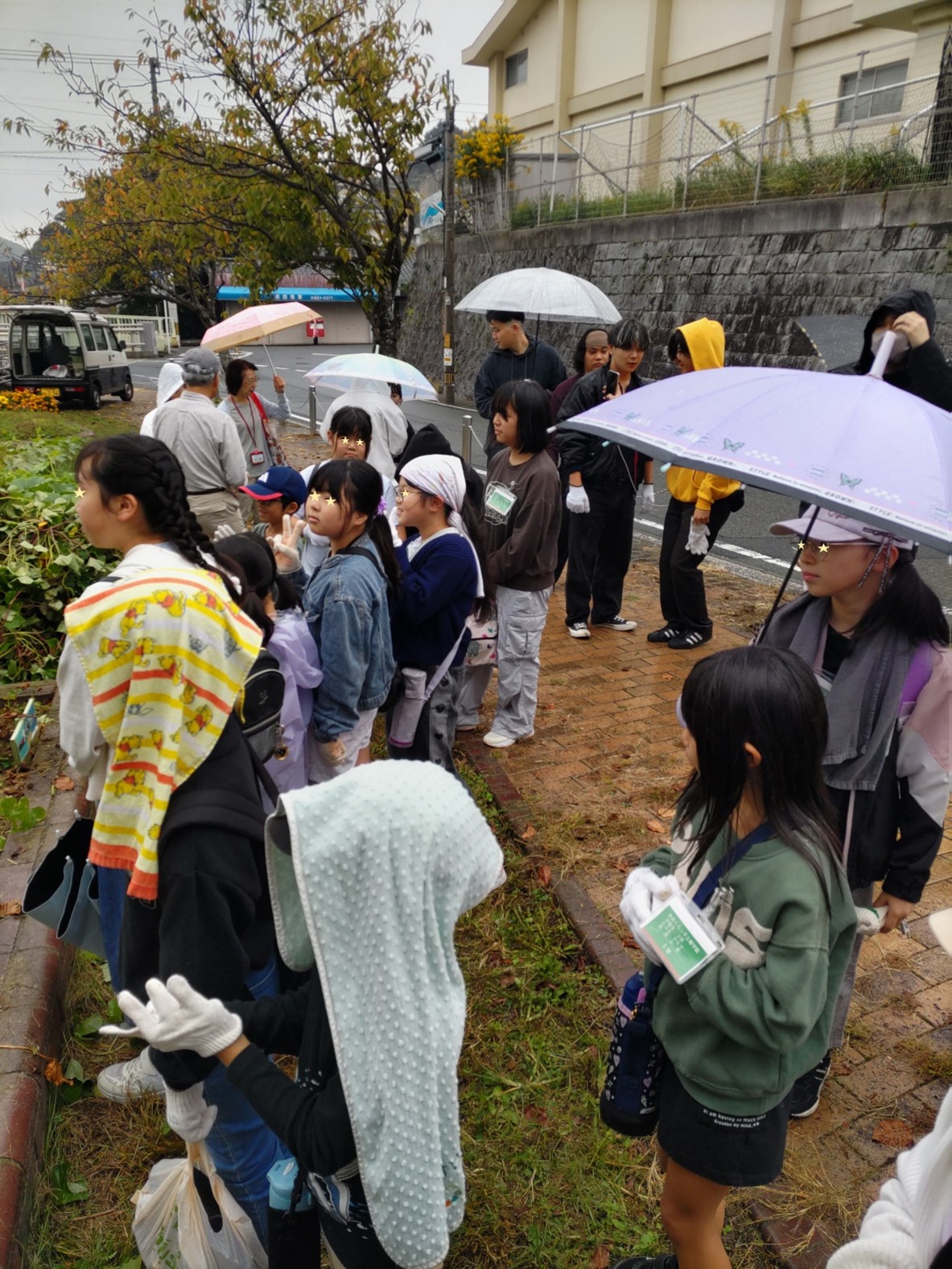 「おおくらっ子10月」の活動内容は、6月に子どもたちが苗を植えた「さつまいも」の収穫です。あいにく小雨が降るなか、本当にお芋が育っているのかドキドキしながら、畑へ到着しました。
