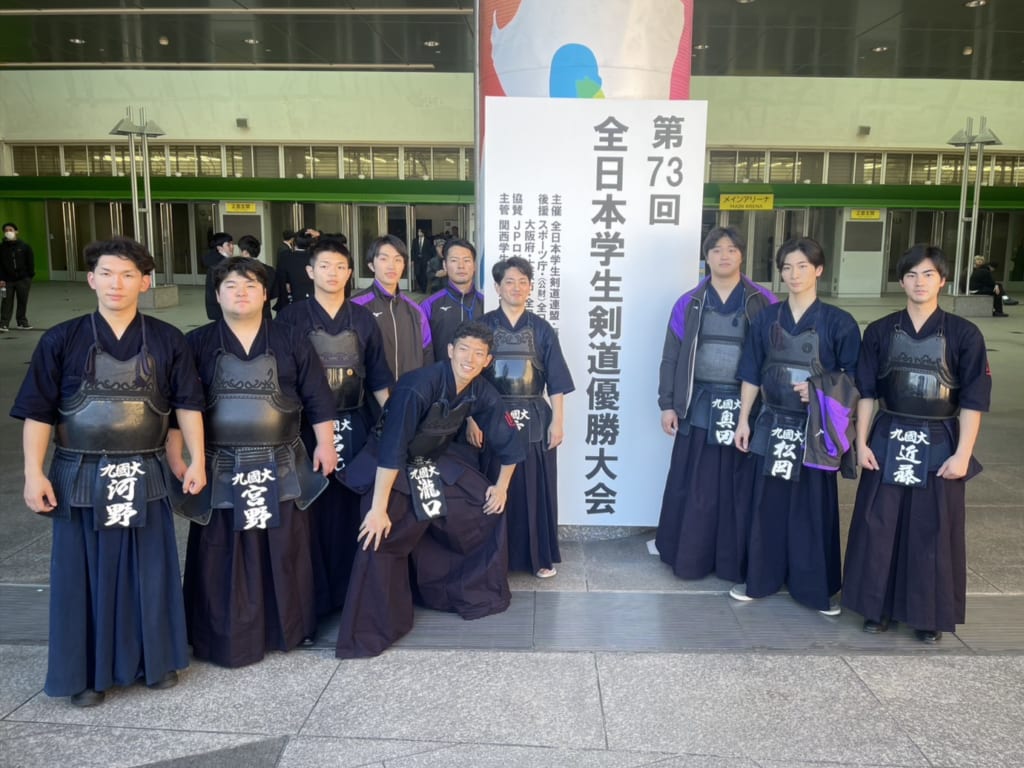 【剣道部】結果報告 全日本学生剣道優勝大会 27 11月, 2025 in サークルブログ / 体育会系 / 剣道部 / 試合結果報告 / 学生支援室 こんにちは、剣道部です。 11月16日(日)、Asueアリーナ大阪にて開催された 全日本学生剣道優勝大会 に出場しました! 結果は以下の通りです。 一回戦 対 同志社大学 松岡 分 北垣 重見 コ渡會 岩元 コ藤崎 木下 メ山本 河野 メ山下 宮野 分 橋本 奥田 分 加藤 惜しくも1回戦目敗退と悔しい結果となり、全国大会で勝つことの難しさを学んだ試合でした。 この経験を通して、来年は男女共に全国大会に出場できるよう日々の稽古を懸命に励みたいと思います。 応援してくださった皆さまありがとうございました!