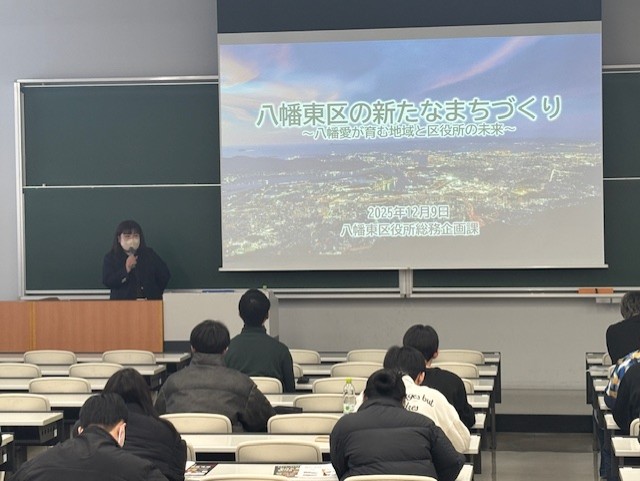 今回の講義を通じて、行政・企業・大学・市民が連携しながら地域づくりを進める「協働の実践」が八幡東区で着実に広がっていることを学ぶことができました。地域イベントやボランティア活動に本学学生も関わっていることを改めて認識し、自分たちが地域の一員として貢献できる可能性を実感したとの声も多く寄せられています。区役所職員の皆さまの思いや将来像に触れたことで、学生にとって大変貴重な学びの時間となりました。