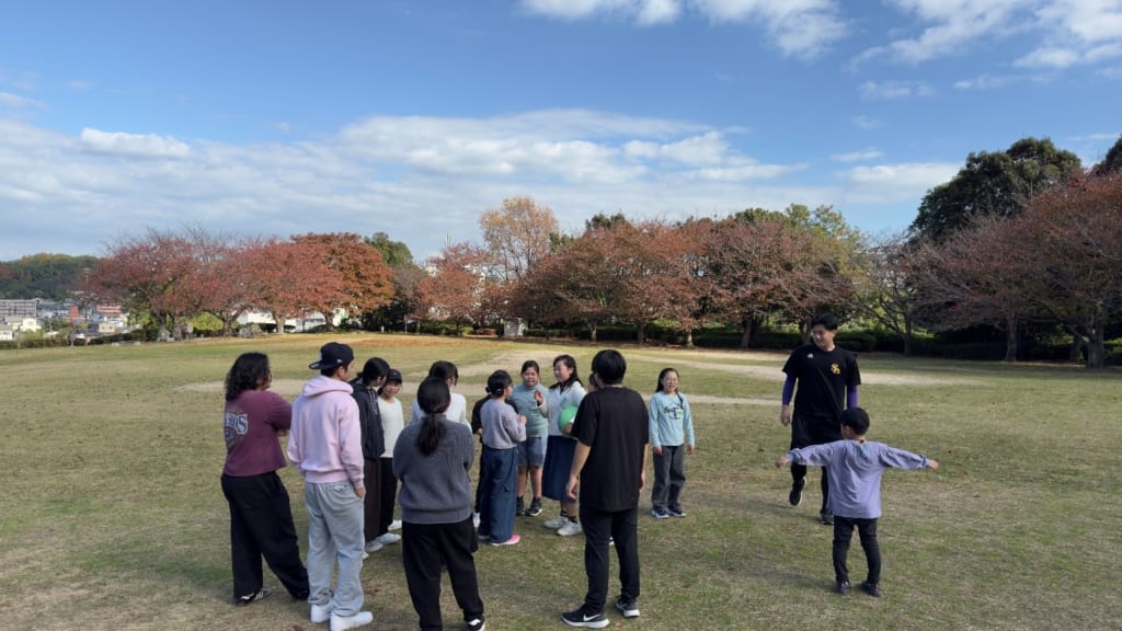 土曜学級が終わった後も、「まだ遊びたい!」という子どもたちの声に応えて、大学生がもうひと踏ん張り。「あと10分だけね!」と言われても、「もっともっと!」と元気いっぱい。公園で走り回る姿に、今日一日の楽しさがぎゅっと詰まっています。今回の「おおくらっ子」は、食と遊びを通じて、子どもたち・大学生・地域のみんながつながる素敵な時間になりました。