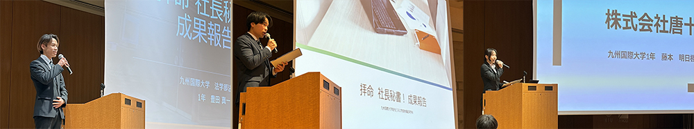 本企画に参加したのは、九州国際大学の法学部1年・豊田真一さん、現代ビジネス学部1年・本永昌幹さん、同じく現代ビジネス学部1年・藤本明日楓さんの3名。