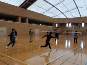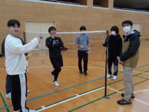 毎年恒例のプレゼン大会が終わると、冬休みに入ります。年が明けて授業再開となっても、定期試験前の残りの授業は数えるほどとなります。年度末のゼミでは、アセスメンターの入力や1年間の振り返りといった作業もありますが、今年度の授業最終回のゼミは、3年生のゼミ生からの発案で、ゼミ内レク大会(主にバドミントン、時々違うもの)を企画しました。