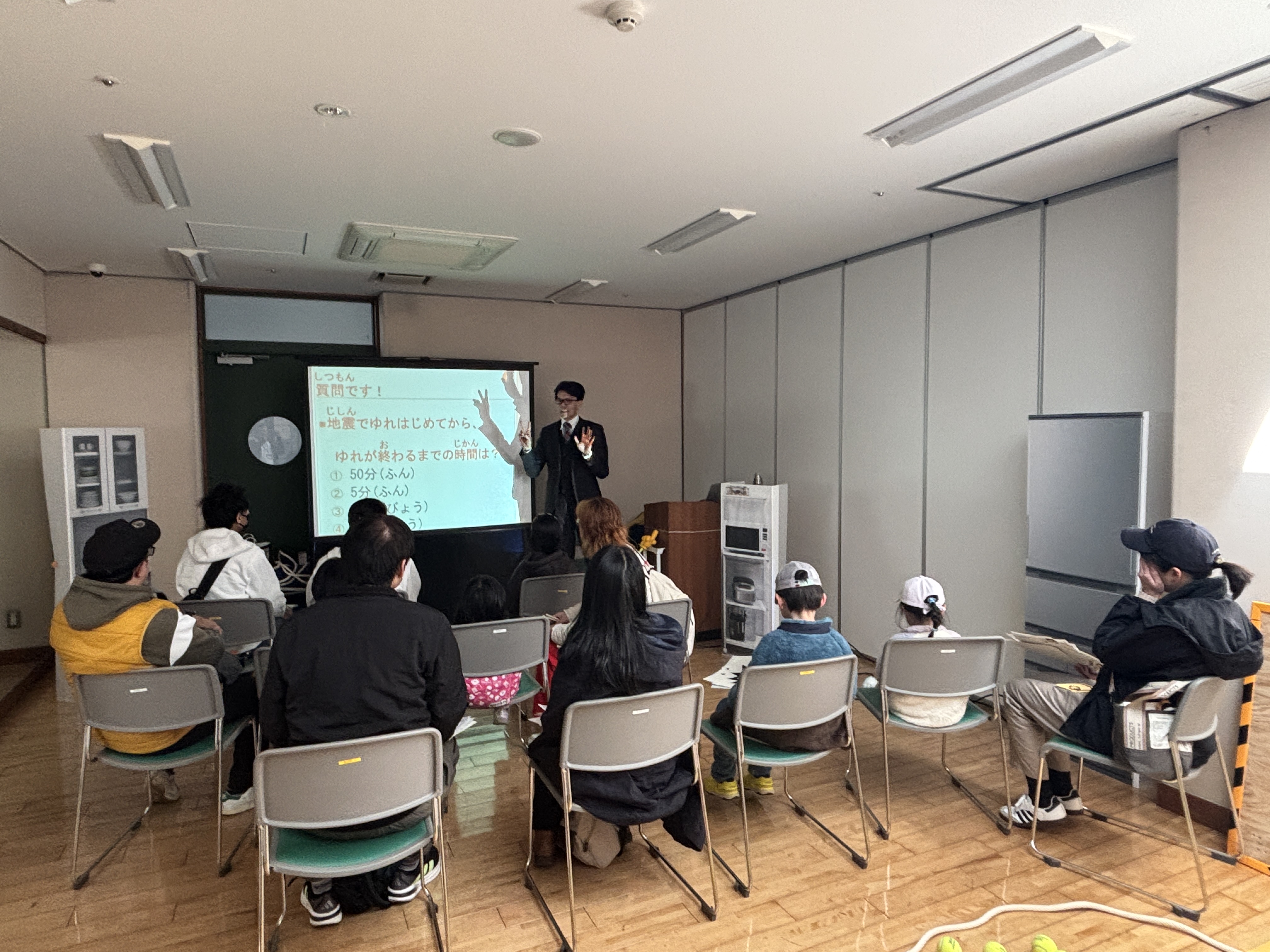 また、地震体験装置を活用し、実際の揺れを体感しながら正しい身の守り方を学ぶ機会も提供しました。体験を通じて、参加者は災害時の行動をより具体的にイメージしながら理解を深めていました。