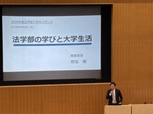 4月2日の入学式に先立ち、4月1日に新入生オリエンテーション、2日の入学式後に法学部ガイダンスを実施しました。