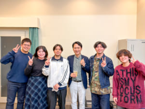 パーティー終了後は荒生田神社に移動し、いつもの槻田二区の方々と二次会になりました。高見地区、なかでも槻田二区の方々は本当にフレンドリーで、いつもわれわれを温かく迎えてくださいます。大学として、ゼミとして、なにか恩返しができないものかといつも考えてきましたが、今年度はなにか目に見える成果を出せるよう、ゼミとしてもこれまで以上に頑張っていきたいと思います。