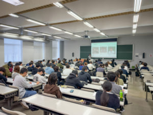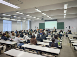 その後、麻生教育サービスの講義担当者に引き継がれ、初回の講義がおこなわれました。週の始まりとなる月曜日の1限にもかかわらず、プログラム参加学生は真剣な表情で講義に耳を傾けていました。