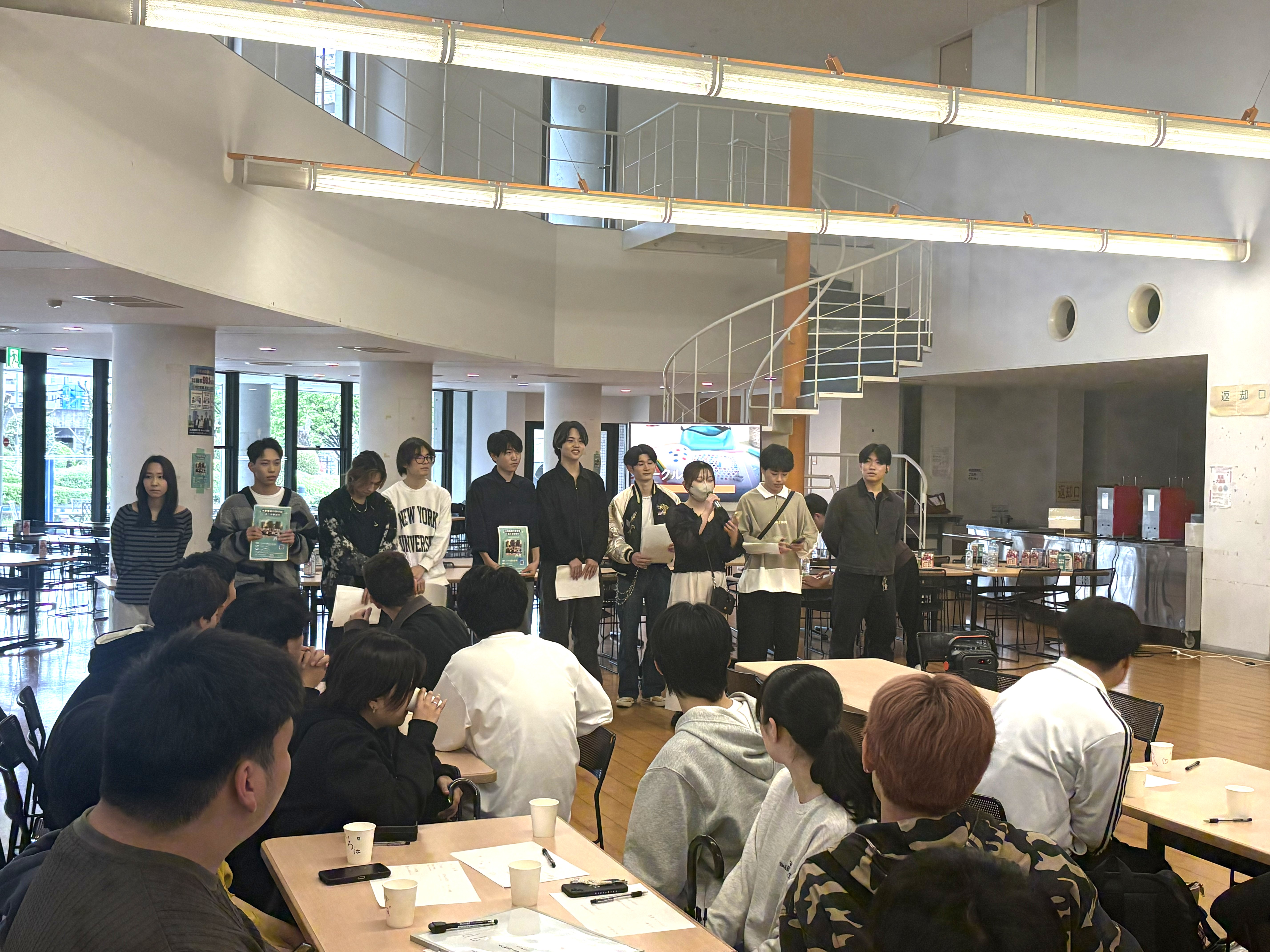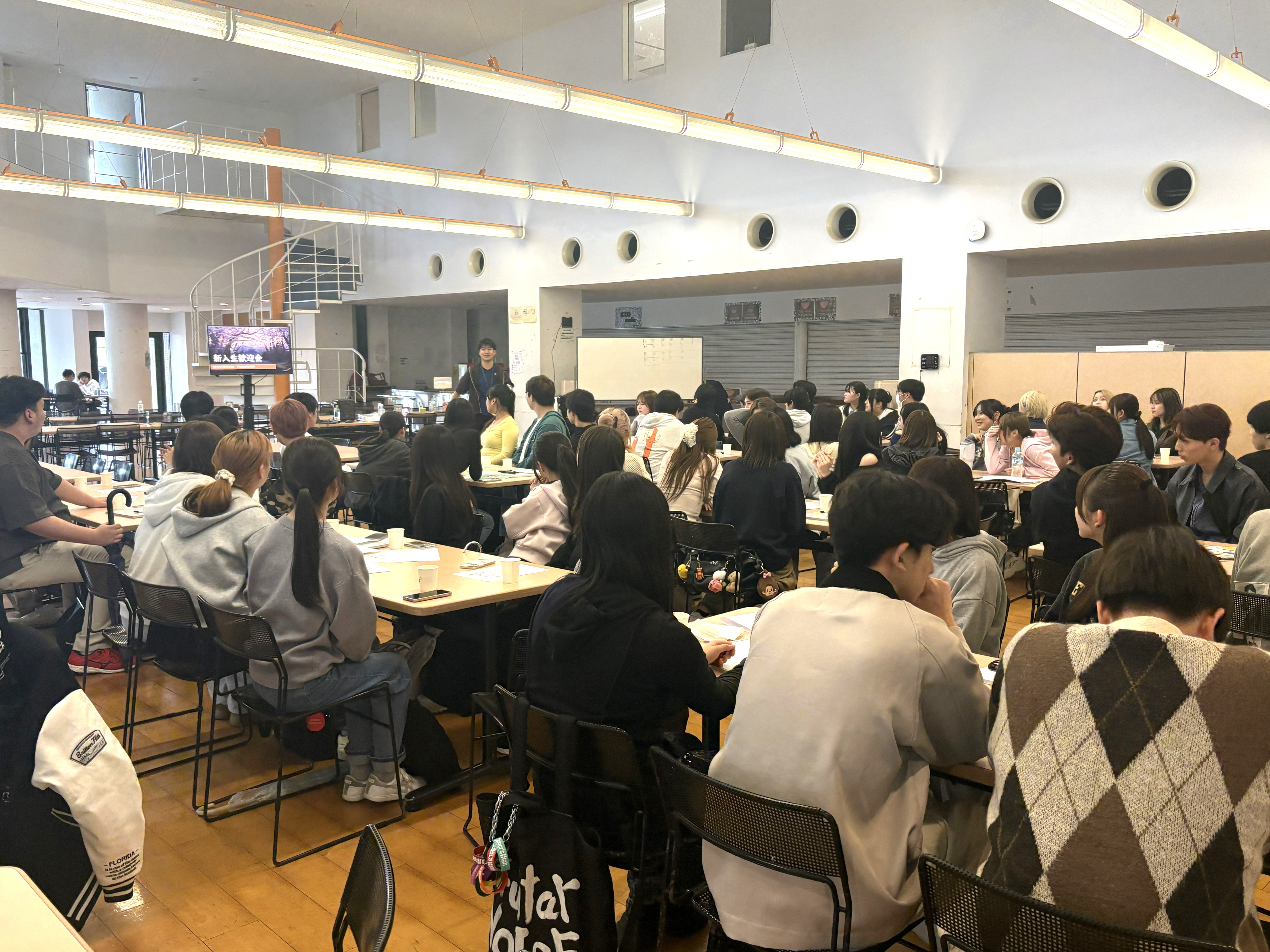 4月15日(水)に学生食堂にて、 新入生歓迎会を開催いたしました。 予想以上の数の新1年生に来ていただき、 急遽イスと机を準備するなど嬉しいハプニングもありましたが、 無事に終えることが出来ました。
