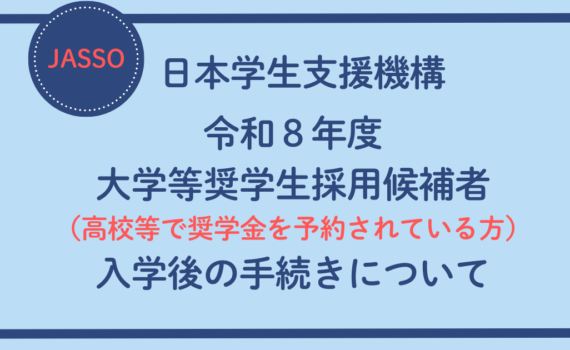 高校等で日本学生支援機構の奨学金を申し込み、「給付奨学生採用候補者」として決定している方で、 早期に [...続きを読む] 【JASSO】給付奨学生・自宅外月額支給早期化の手続きについて(令和8年度新入生)2 2月, 2026 in KIUブログ / 学生支援室より(奨学金)