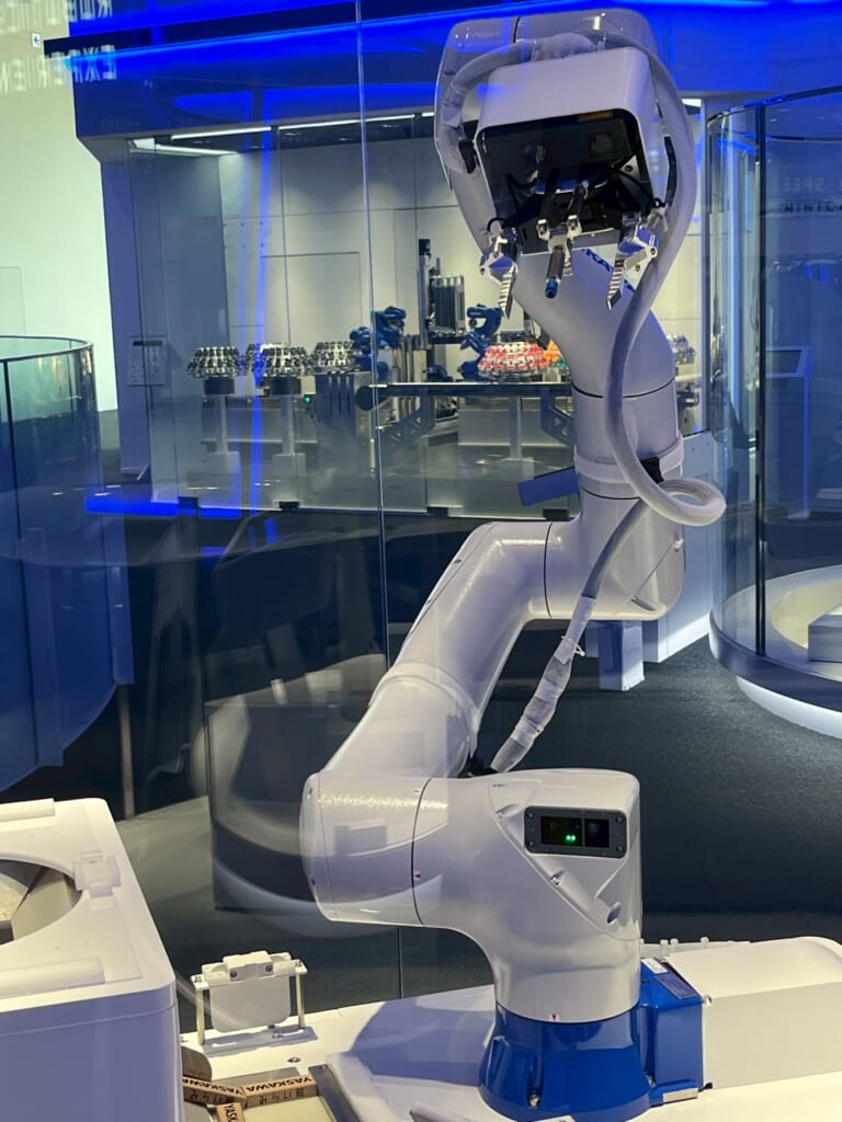 次にご案内いただいた「第1工場」は、世界で初めて「ロボットがロボットをつくる工場」として誕生した貴重な場所。出荷を控えた完成ロボットたちが、最後の仕上げテストに励む様子を見学しました。ここで生まれたロボットが、世界中の工場や医療現場で活躍している――そう想像すると、自然とワクワクが広がります✨