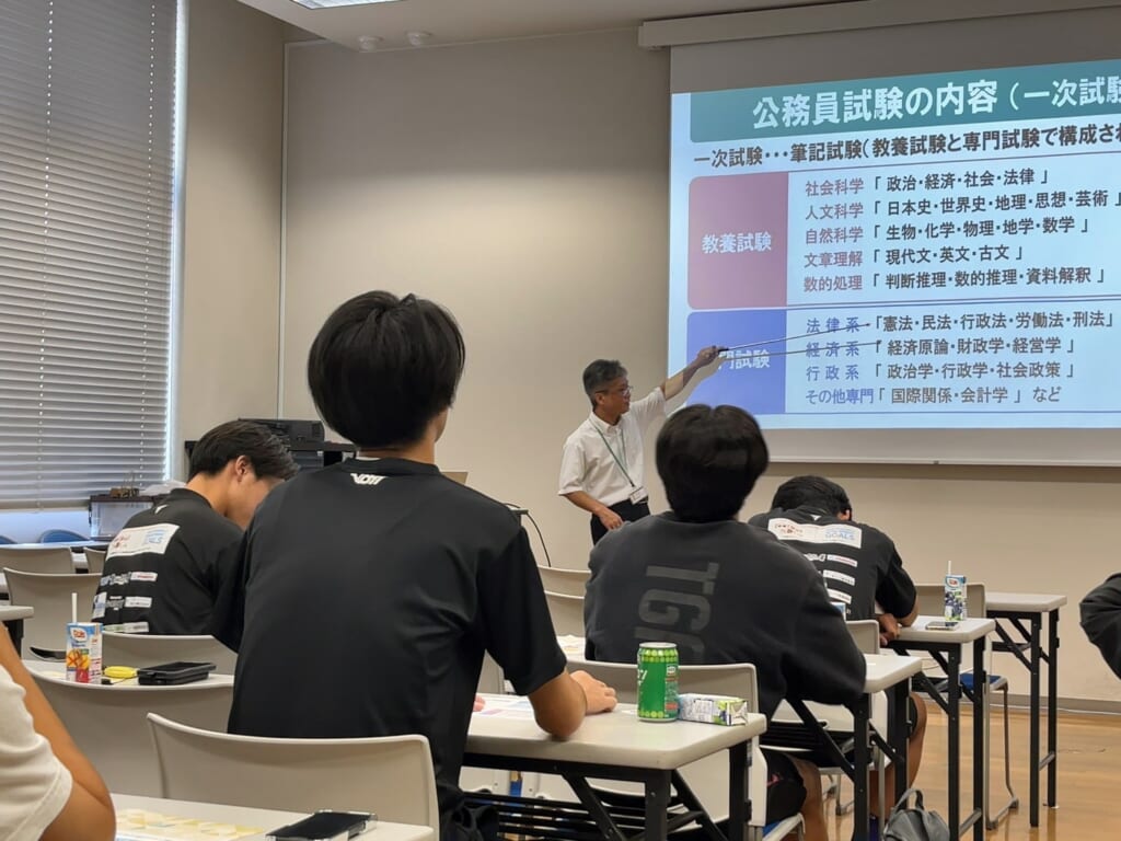 今回のガイダンスでは、公務員試験に向けた基本情報を知るだけでなく、学習の進め方や心構えについても学ぶことができました。本学では今後も、公務員を目指す学生の学習をサポートするため、継続的に対策講座やガイダンスを実施してまいります。💪✨