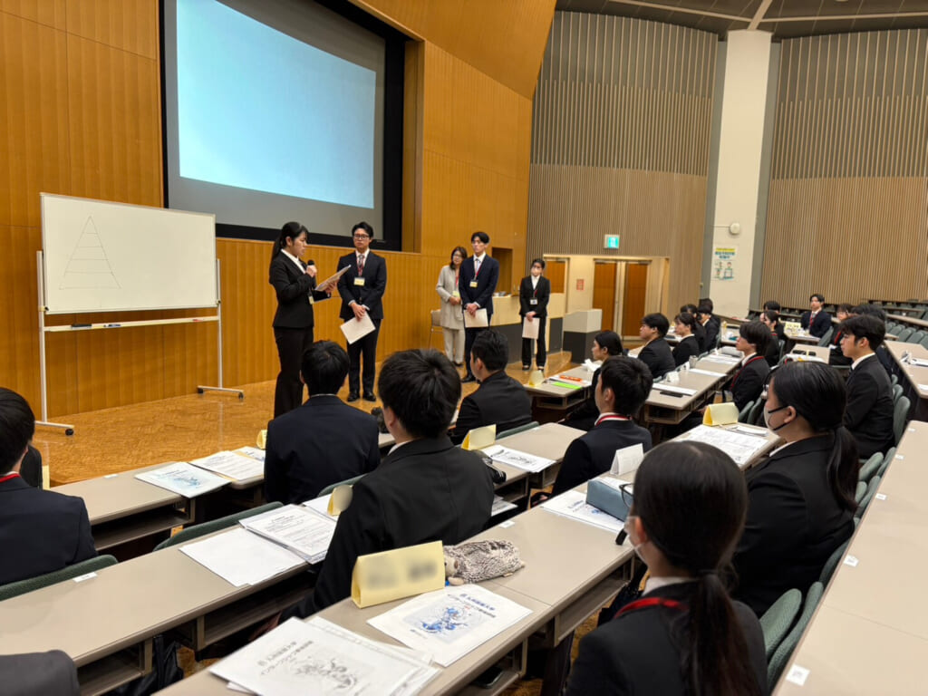 などを整理し、グループごとに発表しました。代表学生の発表では「準備の大切さを実感した」「緊張しながらも自分の言葉で伝えられた」といった声があり、次への意欲を感じる内容が多く聞かれました。