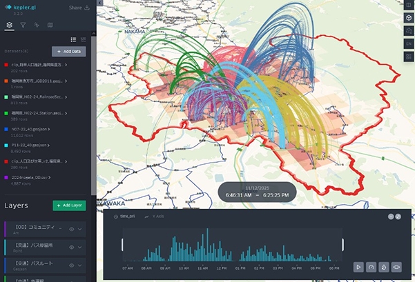 本年度の本事業は、北海道上川郡東神楽町、鳥取県鳥取市佐治町、福岡県北九州市、福岡県直方市の自治体職員、交通事業者、地域NPO、地域公共交通会議人員などを対象に、「サステナブルなまちづくりに資する地域交通検討の地域内製化に向けたDX事業」として地域のDX人材の育成を目的としています。