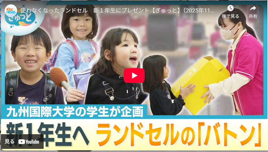 2025年11月1日のKBC(九州朝日放送)【ANNスーパーチャンネル】で学生プロジェクトチーム「サラクル」の「ランドセルランド」が紹介されました。 2025年11月4日のKBC(九州朝日放送)【ぎゅっと】
