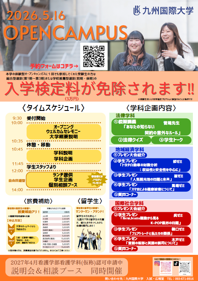 - お問い合わせ先:九州国際大学 入試・広報室
